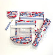 This collection of handmade quilted fabric and vinyl accessories is by Mason House. Carried exclusively by Stitching Fox, these needlepoint project bags and tools are designed to organize your supplies when you travel. These accessories are available in a variety of high-quality fabrics and 16 gauge vinyl. Each piece is lined and finished with covered seams. They are beautiful, durable, and sturdy. Fabric placement and zippers may very slightly on each piece