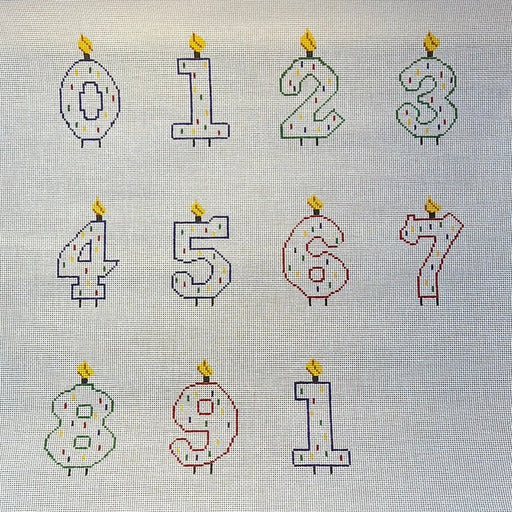 The Gingham Stitchery13 mesh All large candles are 5" high. Widths vary by number from 2.5-2.75 " wide. TGS01-TGS10