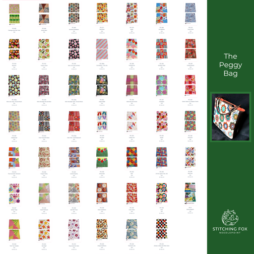The Peggy Bag is composed of 2 panels 10.5 x 13. Styles are available in 10m and 13m as noted, with one 18m style.