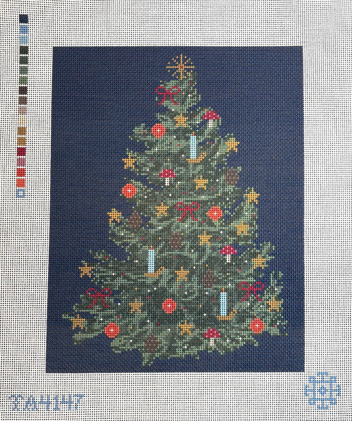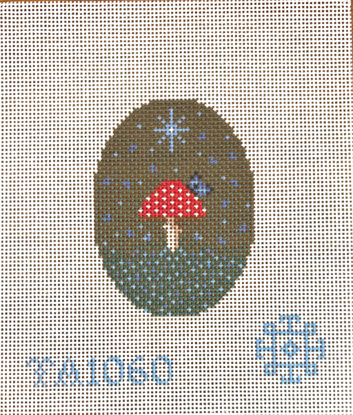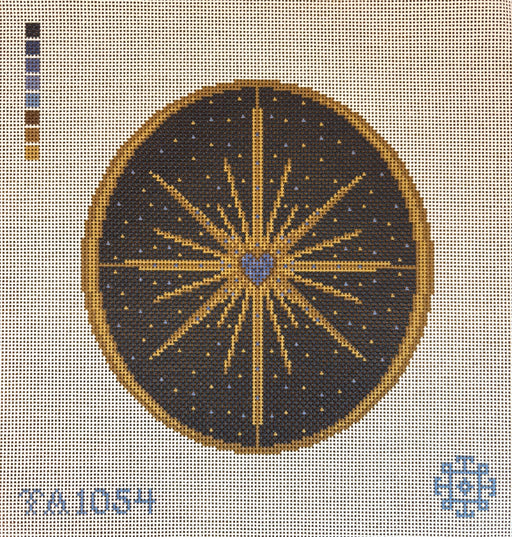 Gold and blue crown with calligraphy lettering of "Nap King" below. Black and gold border. The Nap King needlepoint canvas by Thorne Alexander is t...