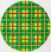3" Round – Christmas Plaid–Green & Lime Gingham w/ Red/ Gold Lines