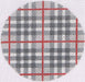 3" Round – Gentleman’s Plaid – grays, white & red w/ Black Letter