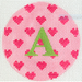 3" Round – Allover Pink Hearts on Medium Pink with Turquoise Letter