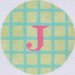 3" Round – Celadon & Turquoise Grid, Bright Pink Letter