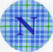 3" Round – Madras Plaid – blues & greens with royal blue letter