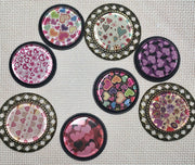- Glass cabochon needleminders feature bright, bold licensed graphics. Each circle measures 30mm/1.18". They are flat on top which eliminates any distortion of the images and ensures for a more secure hold of needles. The finishing touch is the metal alloy setting.