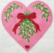 Christmas Ornament – Pink Heart w/ Mistletoe & Red Bow