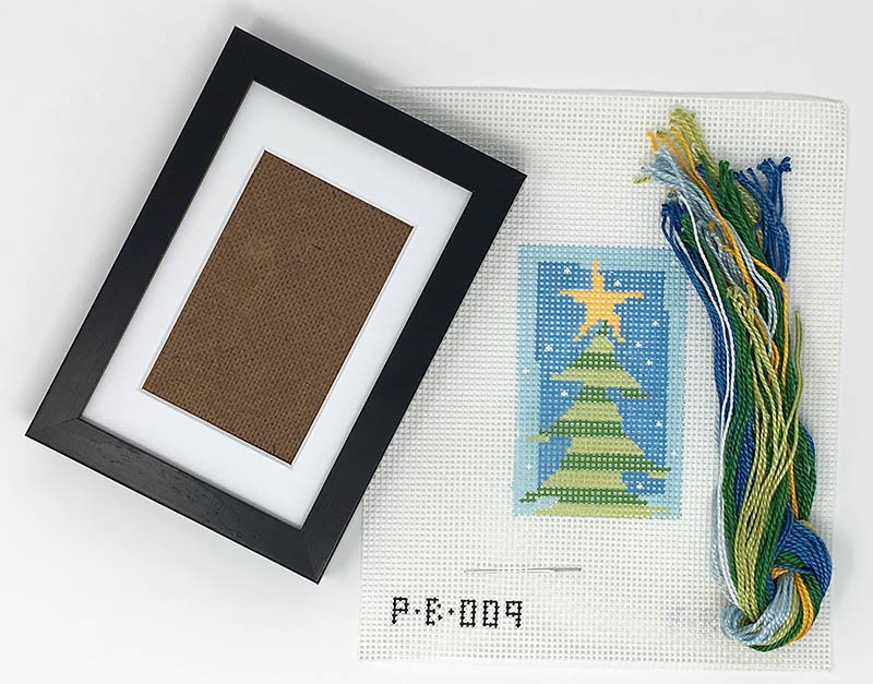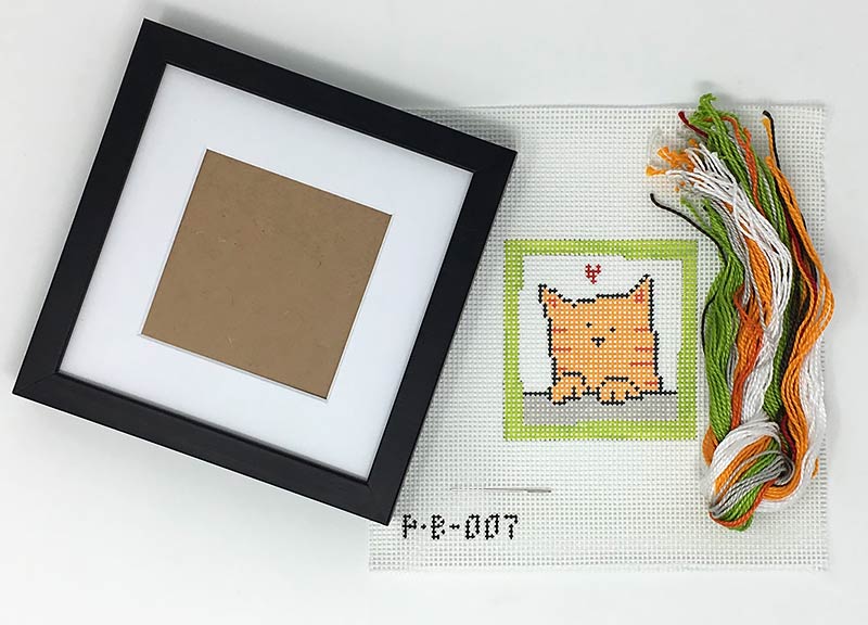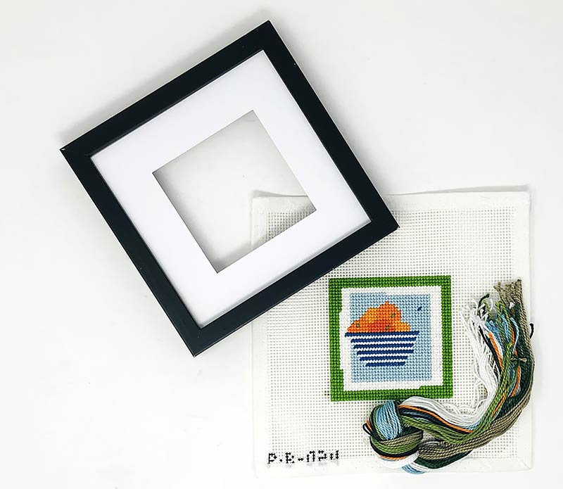 These hand-painted needlepoint stitch kits includes all materials needed, including thread, frame and matte. Square kits are 3.5" square, and tall kits are 3" x 3.5". Perfect for a beginning stitcher, they also make a nice palette cleanser between projects for even the most advanced stitcher!