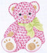 Herend-inspired Fishnet Teddy Bear – pink w/ gold & lime ribbon