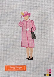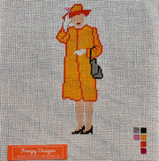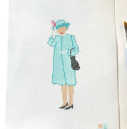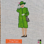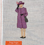 Artist's tip: The space between her chin and her overcoat is for stitching on necklaces, be it pearls or jewels. She would not approve of diamonds because those are not to be worn until after sunset.