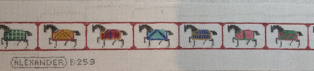 Equestrian themed needlepoint belt canvas. What a perfect addition to make your outfit one-of-a-kind. This belt canvas features a classic horse motif on 18 mesh canvas. The perfect gift for any horse lover or competitor.