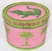 Limoges Box – Lg. Oval Green Gator & Palms on Hot Pink (gold clasp)