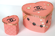 Limoges Box – Petite Heart Box – Chanel Logo & Quilting – peach & black (rose gold clasp)