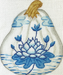 Mini Chinoiserie Pumpkin – Short Gourd Shaped w/ Lotus Flower & Clouds – white w/ blues & golds