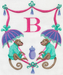 Monogram Crest – Monkeys w/ Parasols – pinks, purples & turquoise