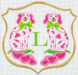 Monogram Crest – Staffordshire Long-tail Dogs w/ Bows – pinks, greens & gold