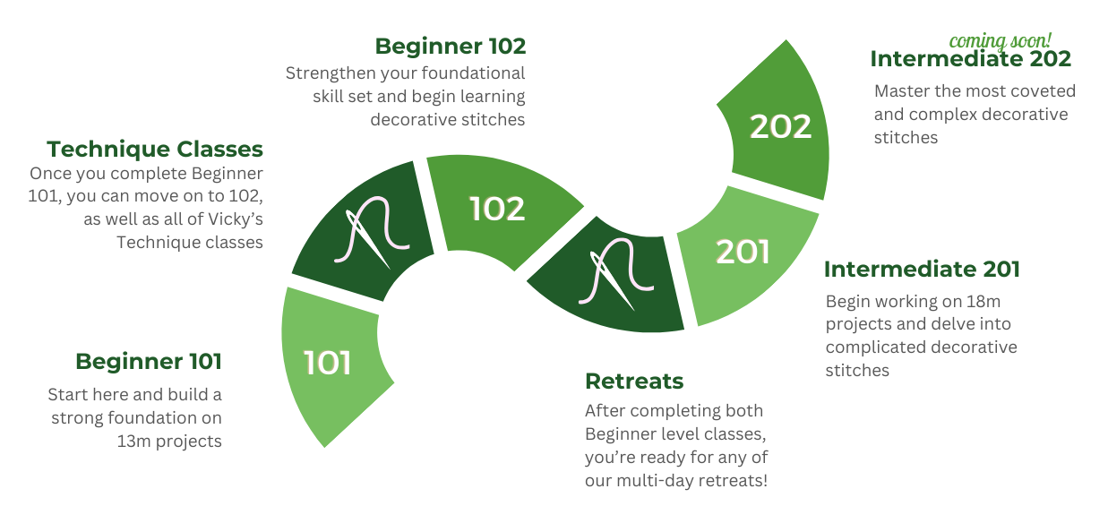 Build a strong foundation and master increasingly complex skills and stitches with Needlepoint Academy!