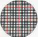 4” Round – Gentleman’s Plaid – grays, black & red w/ red letter