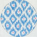 4” Round – Ikat – soft blues & pink w/ bright blue letter