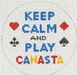 4” Round – Keep Calm & Play Canasta – red, black, yellow & blue on white