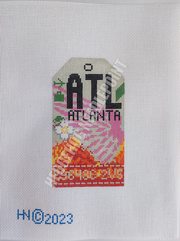 The Retro Travel Tags are a vintage throwback to when each airport would tag baggage with their own uniquely colored baggage tags. Inspiration for color comes from a variety of areas such as country flags, sports teams, and photos. Where the "flight numbers" are located there are secret codes that pertain to either a historical event, local dignitary, or sports jerseys. The Retro Travel Tags are the perfect way to memorialize a special place or event. Turn this canvas into an ornament, a pillow, finish it flat to use in an acrylic tray, make it into a patch to embellish a jacket, tote or backpack.