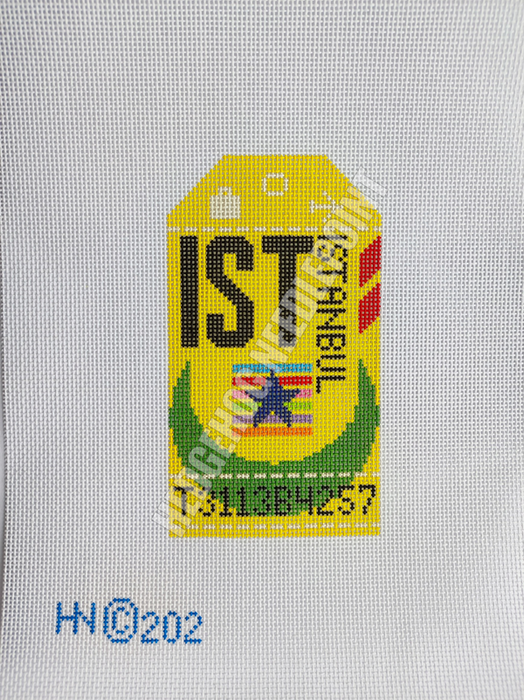 The Retro Travel Tags are a vintage throwback to when each airport would tag baggage with their own uniquely colored baggage tags. Inspiration for color comes from a variety of areas such as country flags, sports teams, and photos. Where the "flight numbers" are located there are secret codes that pertain to either a historical event, local dignitary, or sports jerseys. The Retro Travel Tags are the perfect way to memorialize a special place or event. Turn this canvas into an ornament, a pillow, finish it flat to use in an acrylic tray, make it into a patch to embellish a jacket, tote or backpack.