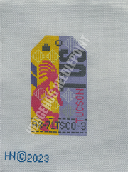The Retro Travel Tags are a vintage throwback to when each airport would tag baggage with their own uniquely colored baggage tags. Inspiration for color comes from a variety of areas such as country flags, sports teams, and photos. Where the "flight numbers" are located there are secret codes that pertain to either a historical event, local dignitary, or sports jerseys. The Retro Travel Tags are the perfect way to memorialize a special place or event. Turn this canvas into an ornament, a pillow, finish it flat to use in an acrylic tray, make it into a patch to embellish a jacket, tote or backpack.