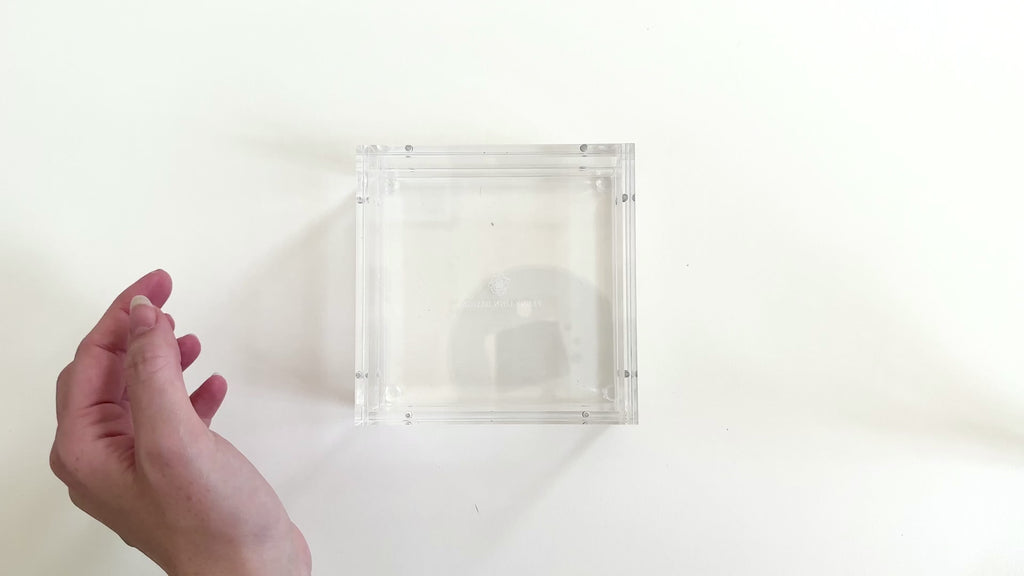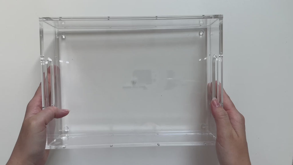 Interchangeable acrylic trays for your needlepoint finishing. + .25" inside dimensions (made to accommodate finishing + cording). Needlepoint opening height measures 16mm // Top depth of the tray is 25mm // 5 - 6 mm thick acrylic.