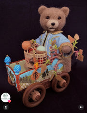 Forrest is a handsome needle felted bear dressed in his finest woodland ensemble. His needlepoint parts are stitched on 18ct mono with a variety of threads and embellishments.